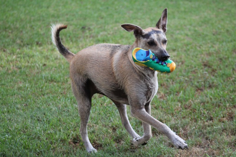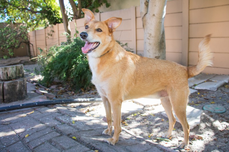 Rango was rescued by CLAW from the township because he was being stoned. They took him to safety, and he went up for adoption; we were assured that he would be a small doggy, not much bigger than a Jack Russell… Well, he just grew and grew, and, today, he’s a gorgeous knee-height dog with a huge personality.