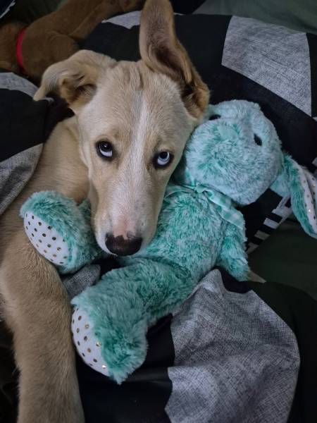 He’s a squeaky toy addict, howling with joy and guarding his favourite toy like a treasure. Deimos is our gentle giant. He wouldn’t hurt a fly but would protect us with all his might (and slobber). He gives daily hugs – doesn’t matter if you’re wearing black or white or if his face is soaked. He’s our silly goofball.