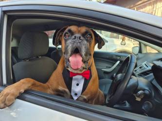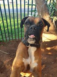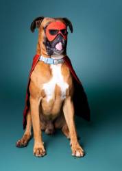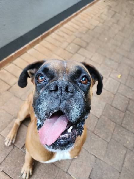 Deimos is our eight-year-old, 50kg Boxer who thinks he’s a lapdog. I haven’t had the heart to tell him otherwise yet.