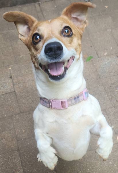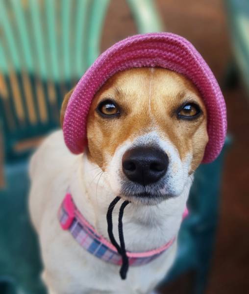 One pup stood out – her little teeth, her smile, her eyes, and that wrinkled forehead. I applied to adopt her through Woodrock Animal Shelter and met her at the Cat Café in Kyalami. It was love at first sight, and two weeks later, Lucy joined our home.