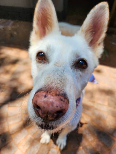 Glitter was an albino Alsatian – oh, what a beautiful dog she was, inside and out.