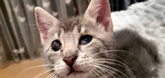 The huge cone he had to wear to protect him from scratching never dampened his wonderful gentle spirit; he walked around the kitten room as if sighted and even roughhoused with the other kittens.