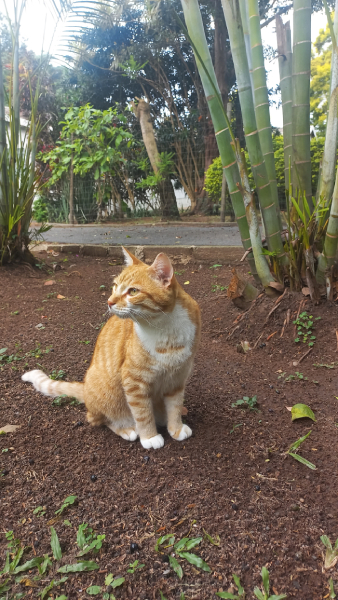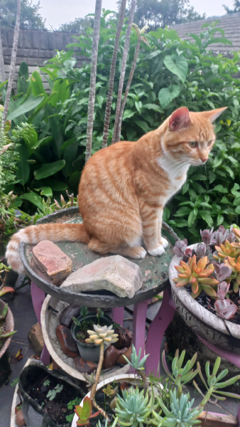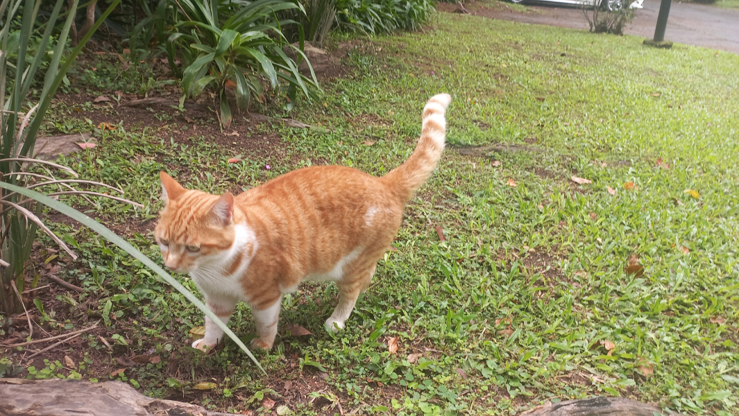 On another day, Roary proudly displayed a plant he’d “caught”. (One must ensure house plants are non-poisonous for cats). Emboldened by this success, the next day he snared one of the free-range geckos. Cheeto, meanwhile, chose to squirm and investigate impossibly small nooks and high surfaces.