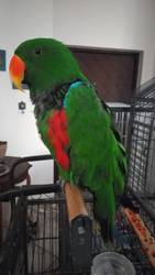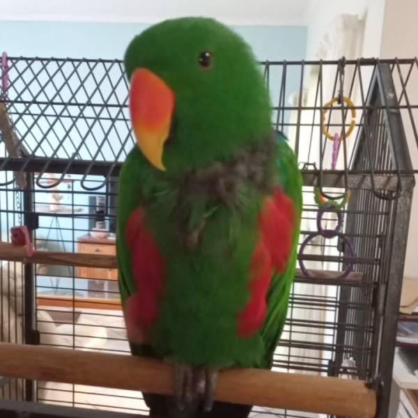 “Alex, my Ecclectus Parrot, was going to be put to sleep 25 years ago as a baby as he has a deformed foot. He now has arthritis in that particular leg.
