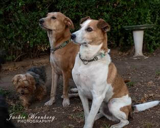 Reiny Maher shares Lyka and Dixie, both of whom were adopted from FORA. “They are spoilt rotten “puppies”. Lyka is now eight and Dixie, whom I’ve had for four years now, is approximately 11 or 12. These two have a busy schedule: they get walked in the park at 7AM, then breakfast, another walk at around 10 and then a marrowbone; they have the afternoon at their leisure then another walk at around 4 to 5PM, depending on the weather. On their afternoon walk, they meet up with their friend and play off-lead, chasing each other around and swimming in the river. Supper time is around 6PM. They are the best of friends and get into all sorts of nonsense together, dashing onto the golf course nearby if given a chance. They have lots of friends and are well known in the neighbourhood. I love them to bits and life would not be the same without them.”