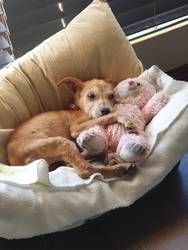 “She’s a bundle of energy, loves driving in the car, and chews everything in sight. I was very surprised about the fact that she never messed in the house. From day one she’s slept in her basket next to my bed and never stirs. She’s a pleasure to have.