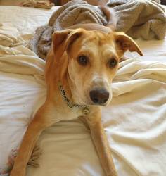 Smaragda Louw shares Bastian who was rescued from the streets of Trikala, Greece. “Trikala has a shelter where I volunteer whenever I visit. While having dinner one evening, I saw a stray dog limp past holding one leg up. I tried - unsuccessfully - to feed him, then just picked him up and called the kind girls running the shelter who came to fetch us. The vet found a huge thorn in his leg; he also had torn cruciate ligaments – probably from being hit by a car – and he still has a limp. He stayed at the shelter for a few months while I made arrangements for him to come home to South Africa.
