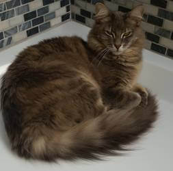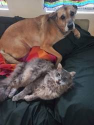 “Thomas is a previously unwanted kitten Maine Coon mix who loves to open doors. He’s a very tall gentleman and my cuddle bug at night.