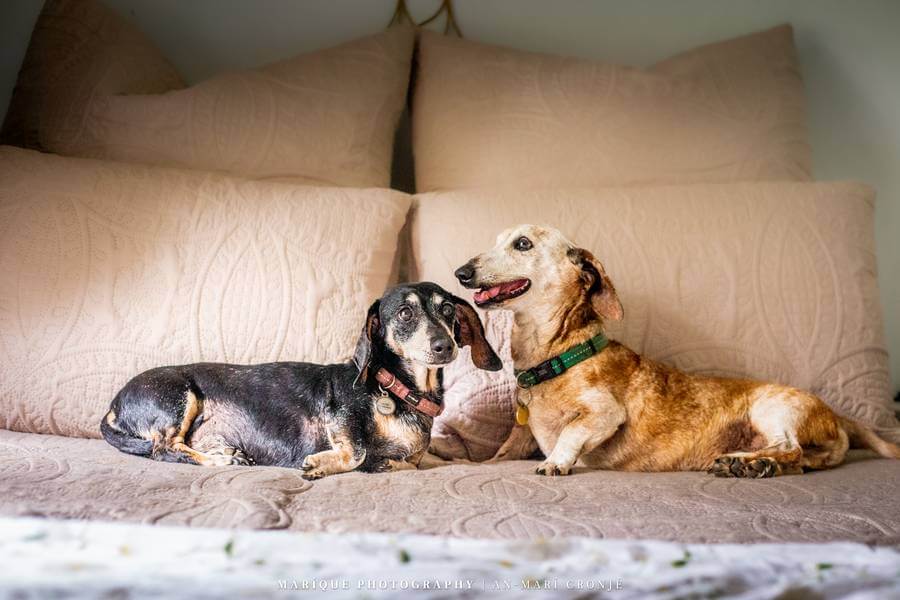 Brenda Meyer shares Lily, a Basset mix (front), who was a foster fail from her organisation, Husky Heaven Rescue; and Apache, who was adopted from the SPCA. “I have many rescues but these two are extra special; they are my lapa buddies, where I spend time with all the special rescues that come to me until they are rehabbed. Lily and Apache adore each other and love nothing more than to snooze happily together.”