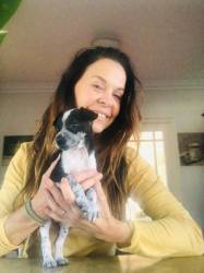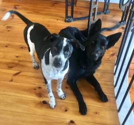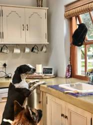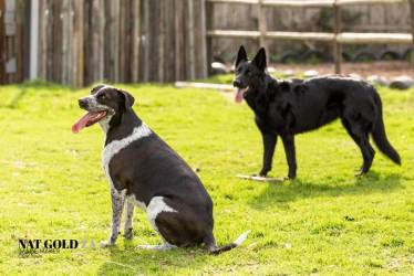 The Dobermann is quite noticeable in his head, chest and legs, yet he has a Bulldog midsection, and his colouring is Australian Shepherd. Temperament-wise, Badger is very Dobermann – an excellent watchdog. He’s also extremely clever, which I guess is due to both sheep-herding breeds (Collie and Australian Shepherd). He does, however, have the very stubborn streak of the Bulldog. I really couldn’t imagine life without him!