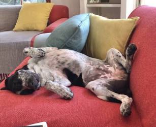 I was delighted when the test returned in super-quick time to reveal that this little boy (who’s now 58cm high and not the Jack Russell we all thought he would be!) was a mix of Dobermann, Australian Shepherd, Collie and English Bulldog.
