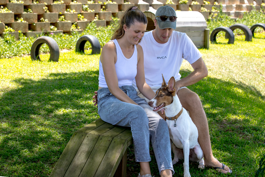 The first time we saw Kuta, who was known as Boomer at the centre, he was a three-and-a-half-month-old puppy tucked away at the back of the cages at Kitty and Puppy Haven, a rescue centre in Johannesburg. He was the quiet, shy puppy, watching from a distance while the others clamoured for attention. We were given the opportunity to meet him one-on-one in a separate area to bond before making our decision. Kuta sat completely still, frightened, for several minutes before cautiously approaching us for a treat. Moments later, he climbed into our laps for protection. In that instant, we knew he’d trusted us, and we knew we’d be able to give him the best life possible.