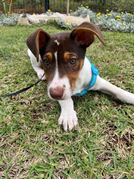 Kuta is, in fact, highly intelligent and learns new things with ease. Because of his sensitivity, he’s uncertain about many things and instinctively runs to your feet for reassurance. Motorbikes are his greatest fear, but with patience and gentle exposure he’s gradually become more comfortable around them.
