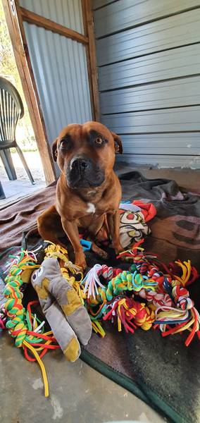 In August 2022, we were told we had to leave the farm where our kennels were – we had until the 30th of September to have the dogs and kennel structures removed. At this stage, we’re still looking for a home to re-erect our kennels so that we’ll be able to rescue more Staffies. We currently rely solely on foster families to look after them while we search for suitable homes.