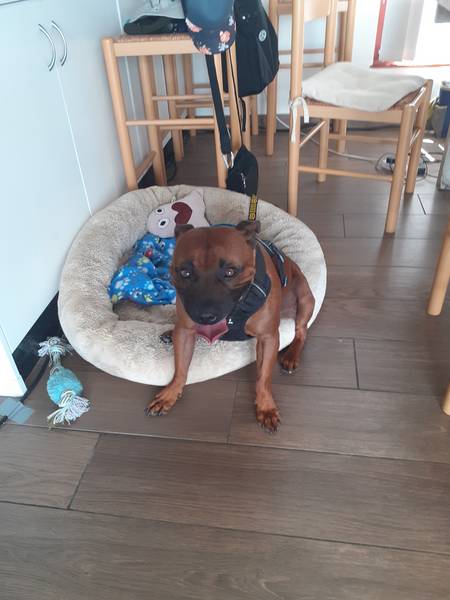 Only afterwards did we discover that something was terribly wrong with this handsome young Staffie…