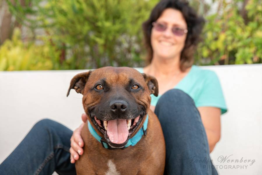 Getting to know the Staffie breed was a huge learning experience as I grew up with two miniature Dachshunds and, while married, had two terrier-cross dogs from TEARS. Looking after a power breed is so different, and Bruno being well-trained and obedient makes it not only safer but easier to handle him.