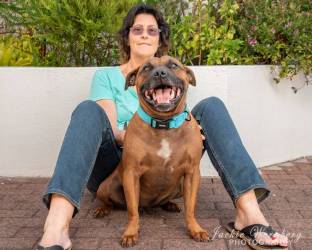 A good friend, Tracy Williams, introduced me to Bruno for the first time when I went with her and her husband, Clive, to visit the farm out in Klein Dassenberg where the Staffies were being kennelled. That was in March last year, so I’ve been a Staffordshire Terrier Rescue South Africa volunteer for almost one year now.