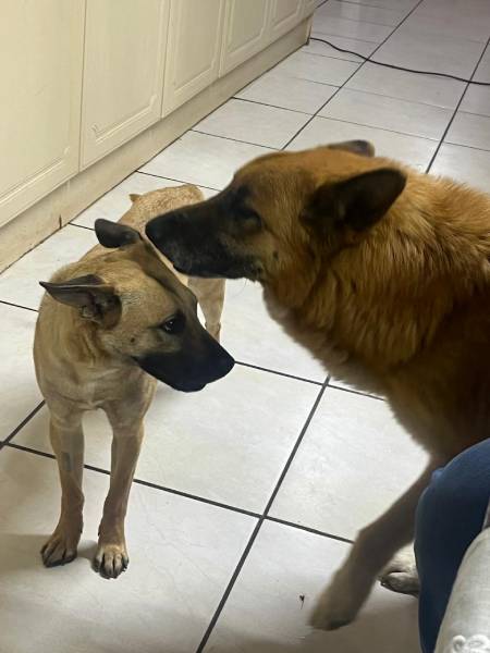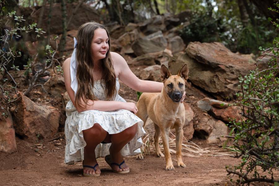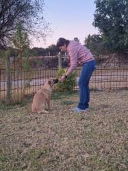 Gwen and Sue took her home, gave her fresh water and a warm place to rest, and began sharing her story in community groups to find her a loving home. The response was incredible. Ally Agnew from Reprieve Animal Welfare NPC quickly stepped in to help and asked for photos and suggested we check her temperament with cats and other dogs. We did a temperament test – she passed with flying colours, showing just how gentle and sweet she really was.