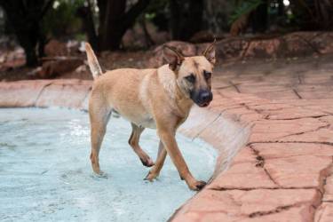 Lexi is a very energetic dog who runs all over the place and even enjoys the occasional dip in the swimming pool.