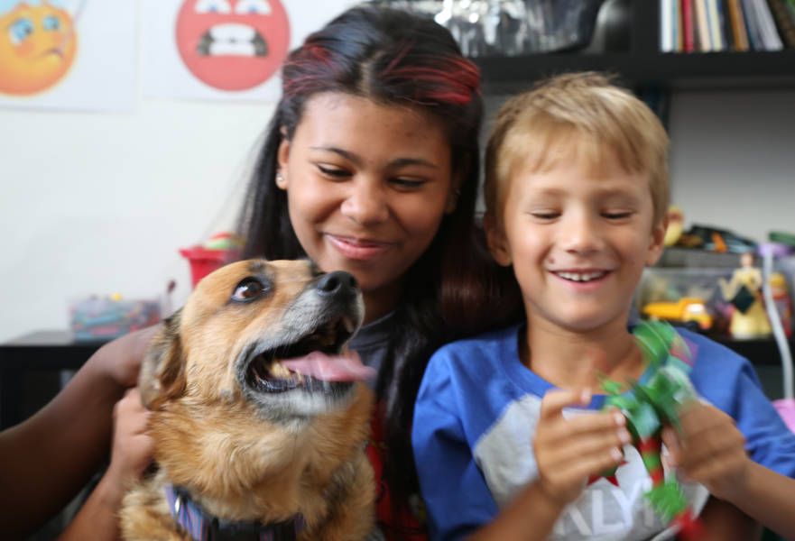 Now she’s not used as much in our centre as I moved the office to home, but she loves to give cuddles. Whenever my grandchildren cry, Holly immediately goes to give them a cuddle and comfort. When my five-month-old grandson cries, Holly gets agitated and tries to nuzzle him. She snuggles with the children at night and will sleep with them in whatever way they need her to – as a pillow, a comforter or just a presence.