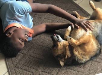 She’s now almost seven years old and still the same – tolerant of other pets and animals, but she definitely prefers human interaction. Holly is one of the most affectionate dogs we’ve ever had. She brings joy and comfort to so many people, especially traumatised children.