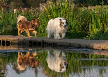She does have issues – probably an effect from being on a chain. She’s quite neurotic. When I’m in the kitchen, she drinks frantically from the bowl for minutes and only stops when I say it’s enough – then she stops and goes to Luca and licks her ears. Luca – adopted from Border Collie Rescue South Africa – is very sweet and tolerates it, but it isn’t nice as she goes on interminably. Every evening when we go to bed, she lies next to me, and after a while she changes position or gets in a dog bed on the floor.