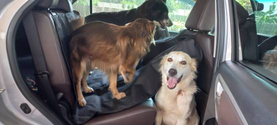 October 2024: Amber (that’s what I named her) ran back and forth on a busy road in the countryside with two other dogs. A lady stopped and Amber jumped into her car, but the other two ran off.