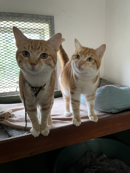 It was pure ginger joy. Two pairs of enquiring eyes gazed at me before the fluffy nuzzling, head-butting, rubbing against my legs, nose touches, and purring began. And, just like that, the connection was sealed, and Roary and Cheeto, the two AACL cats, and I were family.