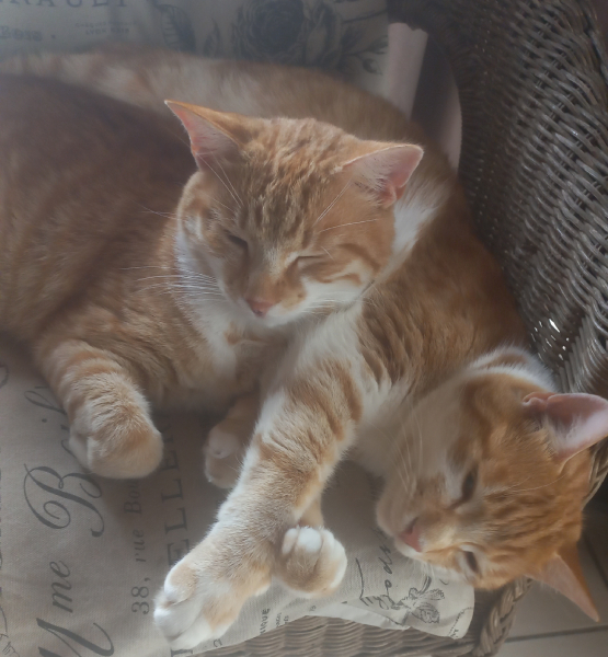 Soon after, Amy sent info and photos of the “Brothers Ginge”, and I was seduced. Separating them wasn’t an option, and to prevent that fate, I offered to adopt them both.