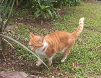On another day, Roary proudly displayed a plant he’d “caught”. (One must ensure house plants are non-poisonous for cats). Emboldened by this success, the next day he snared one of the free-range geckos. Cheeto, meanwhile, chose to squirm and investigate impossibly small nooks and high surfaces.