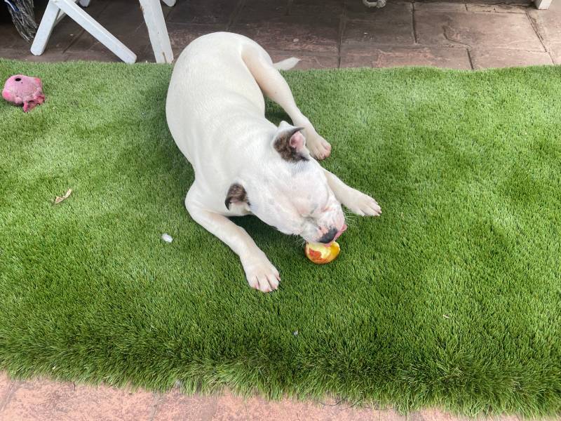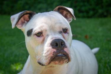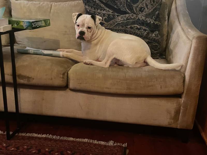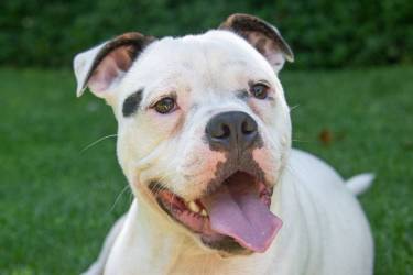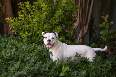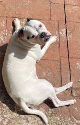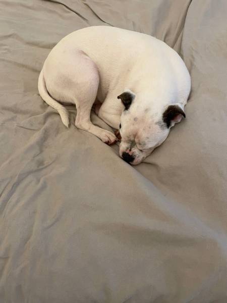 We all assumed that Luke was a Boxer cross. It was difficult to judge the lineage of this gorgeous white pup from photos posted on the Boxer Rescue Face Book page and from all the WhatsApps that we shared with Boxer Rescue whilst arranging his adoption. He looks a lot bigger on photos than he is in real life. He weighs around 18kg and doesn’t really have the obvious physical characteristics of a Boxer. He’s just turned nine months old and is a playful and adorable pup, so eager to please and full of love.