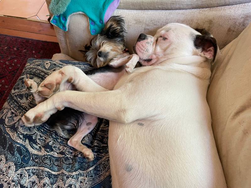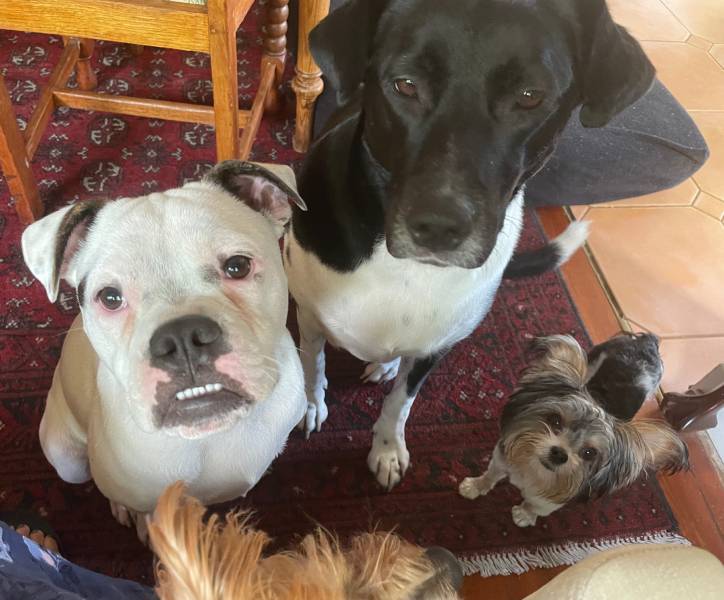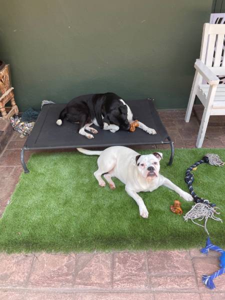 Luke stole our hearts from the first moment we saw him, still crated, and exhausted after a long, tedious, and delayed flight from George. His gentle, non-confrontational nature assured his easy integration into our home. His companions currently are Pearl, our designer dog featured on Happy Tails January 2020 with Ares (https://www.happytailsmagazine.co.za/muttmix/the-story-of-the-pearl-and-the-boxer/), Benji, a feisty 11-month-old Biewer Yorkie who’s Luke’s best friend (all 2kg of him), and Maya, his other small Yorkie companion, who mostly stays out of his way.