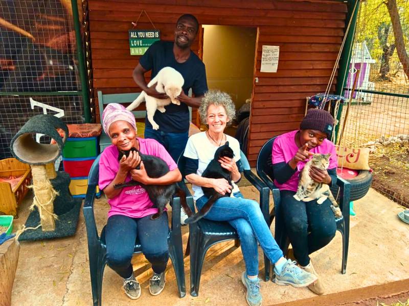 From left to right: Erina Taruwedzera (Cattery Assistant), Charmaine Rochat (Founder of Friends of Ferals) and Sarudzai Mukaro (Head Caregiver)